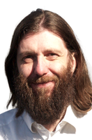 • Man with glasses, short dark hair, and beard, wearing a black button-up shirt, smiling and facing forward against a white background.