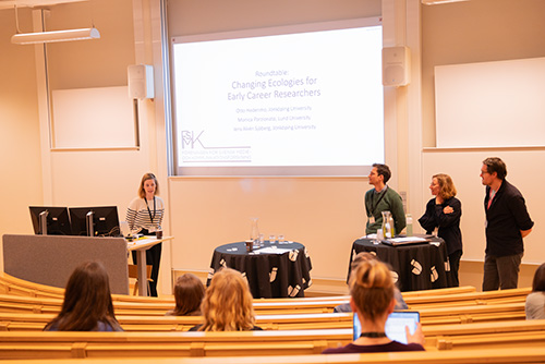Den sista punkten på första dagen hölls av Otto Hedenmo och Jens Alvén Sjöberg, båda doktorander på HLK, tillsammans med Monica Porzionato doktorand vid Lunds universitet. De delade in deltagarna i mindre grupper för att diskutera ämnet ”Förändrade miljöer för forskare i början av karriären”.