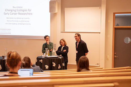 Ett 30-tal personer från olika delar av landet, som alla på ett eller annat sätt har koppling till medie- och kommunikationsvetenskap, deltog på konferensen. En av dem var Linus Andersson, docent i MKV vid Högskolan i Halmstad.