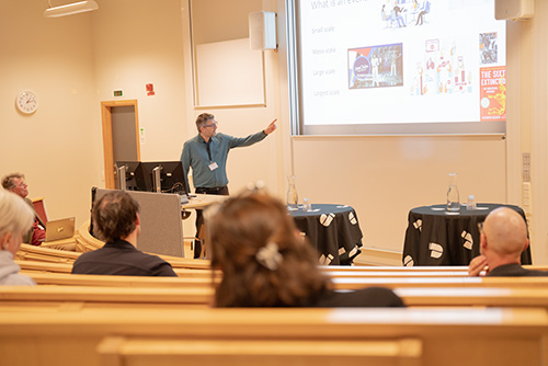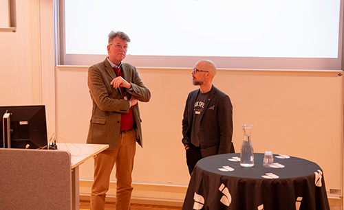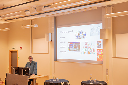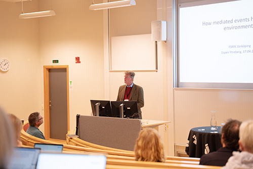 Göran Bolin berättade kort om FSMK och tackade HLK för arrangörskapet innan han lämnade över till huvudtalaren Espen Ytreberg, professor i medievetenskap vid Oslo Universitet. Hans föreläsning hade titeln “How mediated events have created environments” (Hur medierade evenemang har skapat miljöer).