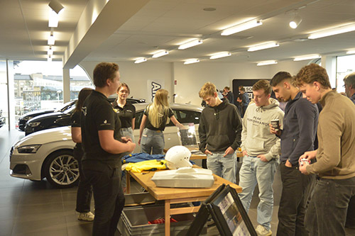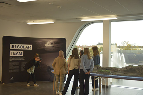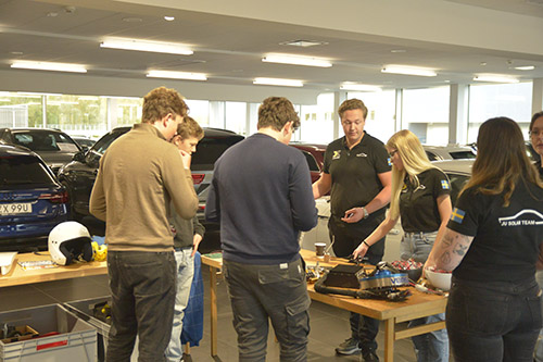 Förutom att sitta med i juryn visade JU Solar Team upp delar av sin solbil i full storlek och svarade på frågor från eleverna. De bygger solbilen själva och tävlar nästa år i Bridgestone World Solar Challenge i Australien.