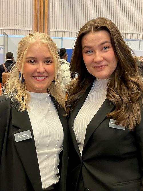 Det är ett jättebra upplägg på mässan. Vi vill få kontakt med företag och höra mer om hur arbetsmarknaden ser ut för oss. Den här dagen ger många nya intryck och gör att man får upp ögonen för hur många olika karriärmöjligheter det finns inom vårt utbildningsområde, säger Karolina Fridman.