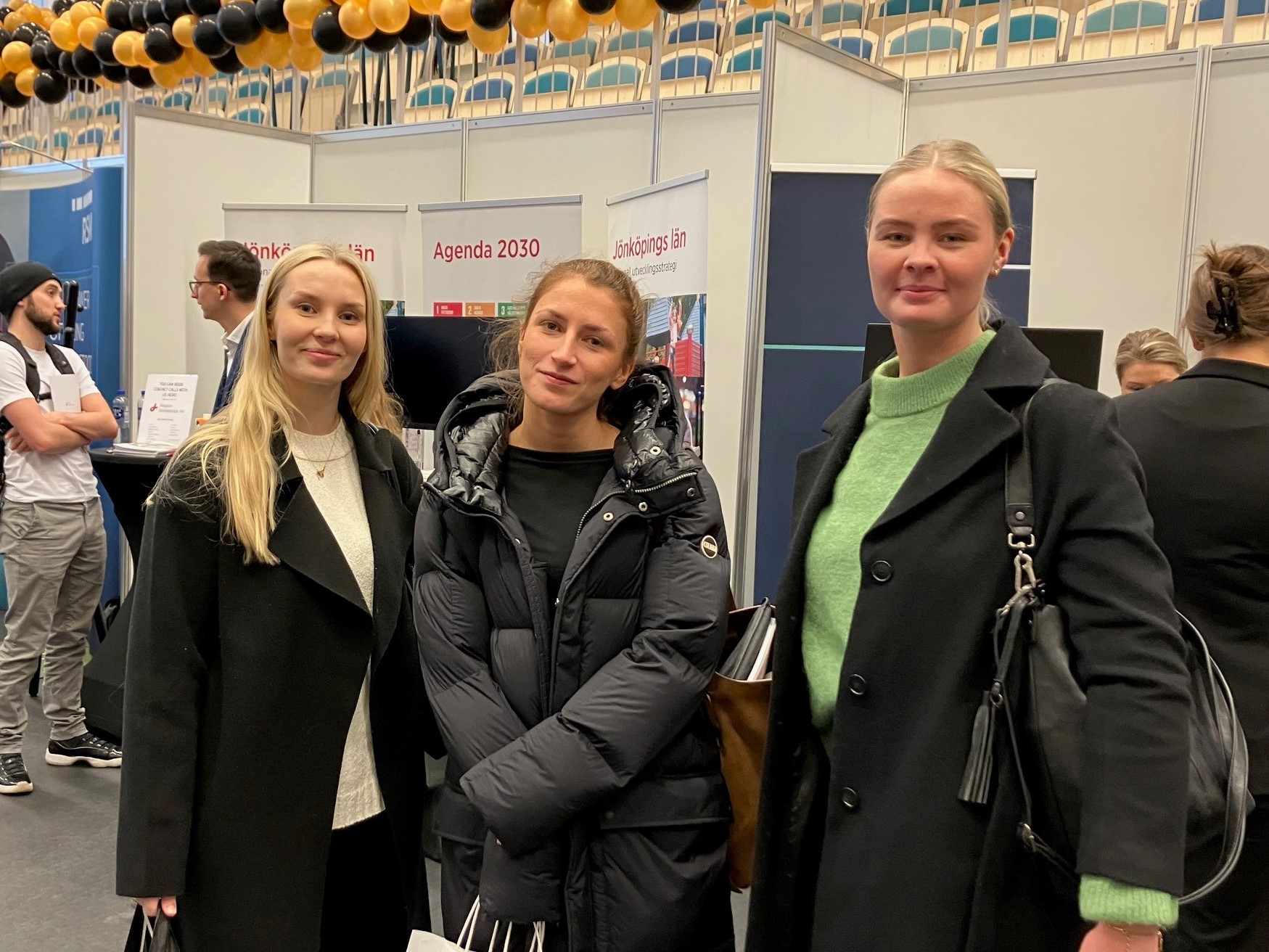 Hanna EK, Karolina Fridman och Frida Härstedt, som går tredje året på Civilekonomprogrammet på JIBS var tre av studenterna som besökte mässan.