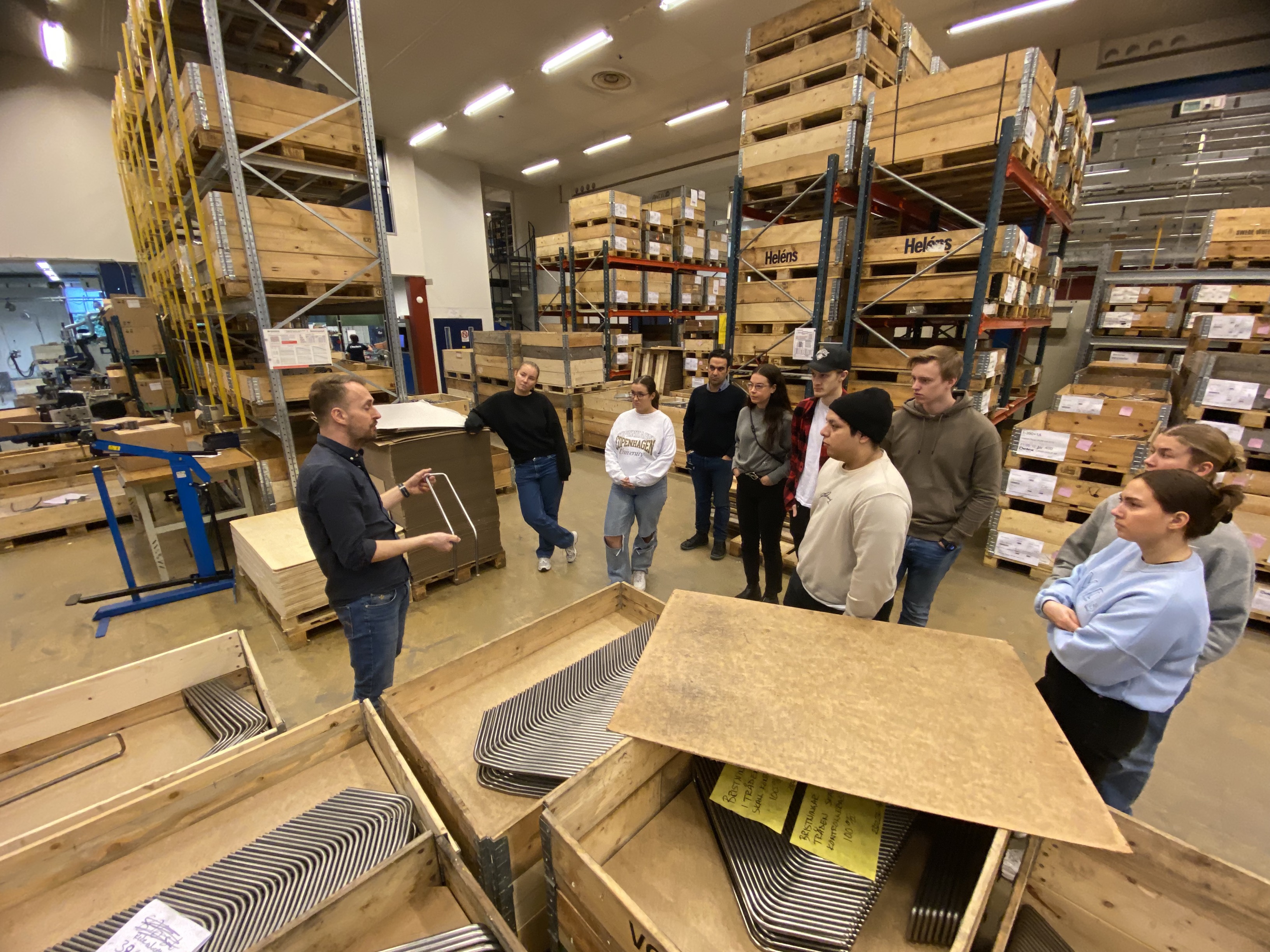 Ett 30-tal civilingenjörsstudenter deltog i årets industriresa, som gick till fyra företag och ett industrimuseum i Gnosjöregionen. Här besöker studenterna Delex Teknik i Forsheda.