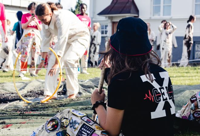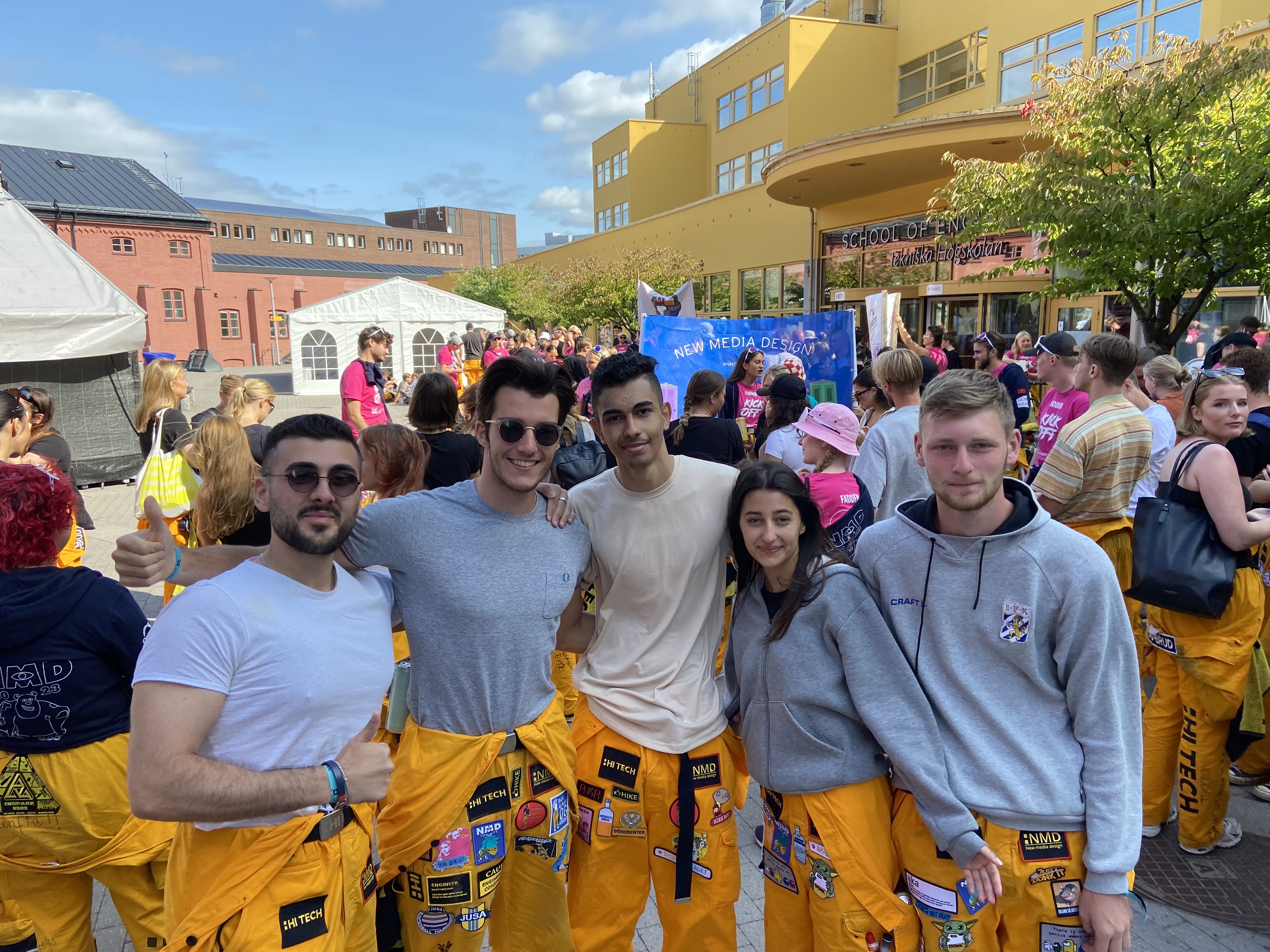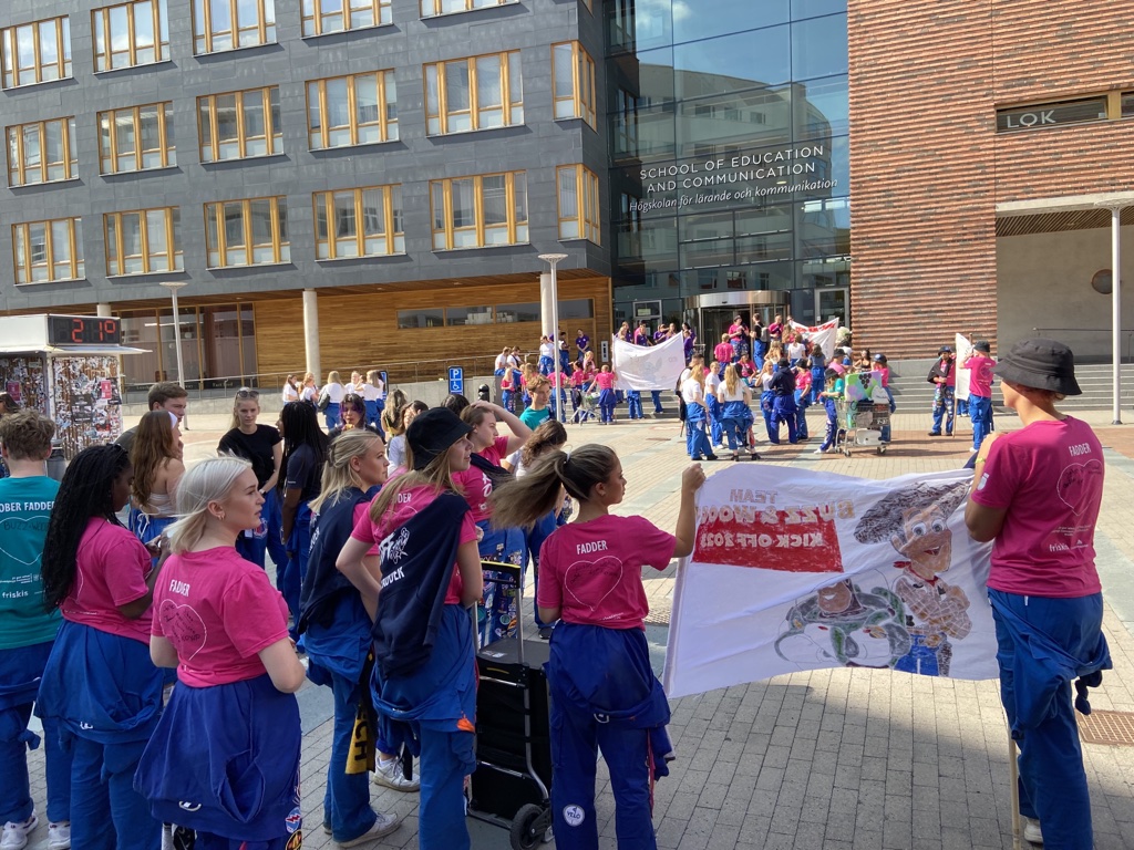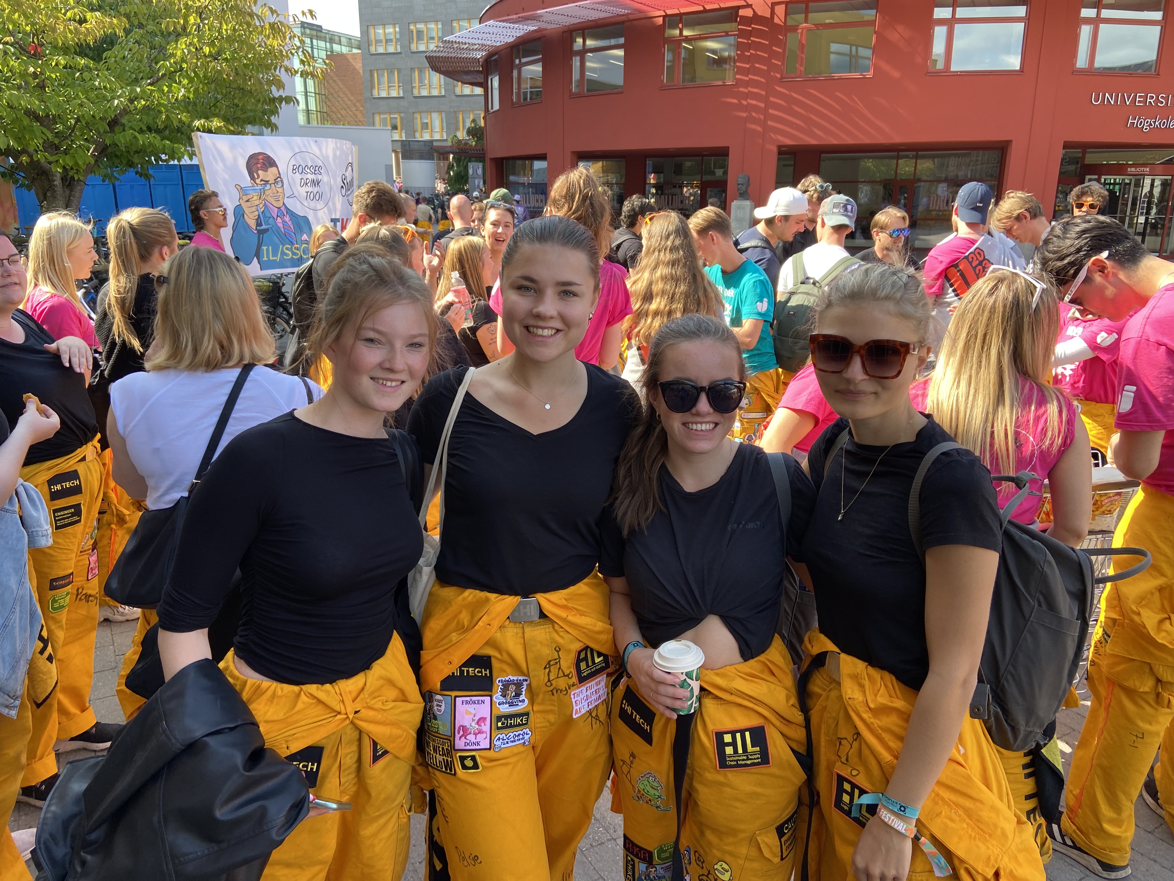 - Vår uppgift är att se till att studenterna känner sig trygga, säger Ida Lilja (längst till vänster), en av faddrarna på Hälsohögskolans inspark.