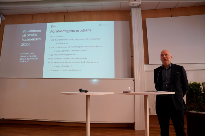 Temat för årets konferens var ”Attrahera och utveckla talanger genom samverkan i Småland”. Presentationer hölls av både JTH-forskare och företagsrepresentanter som berättade om sina erfarenheter och om hur forskningen inom SPARK gör nytta.