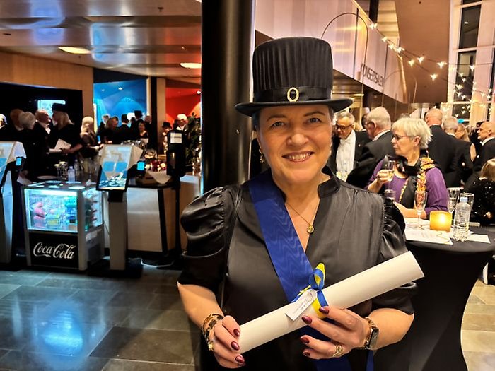 – Titeln betyder mycket för mig, men jag har aldrig riktigt tänkt på historien bakom den. Det var trevligt att få veta mer om diplomet, ringen och hatten, jag kände mig väldigt stolt. Jag kommer från Finland och jag vet att ceremonin är liknande där, men det finns några skillnader. I Sverige har ni doktorsringen, vi har ett svärd.